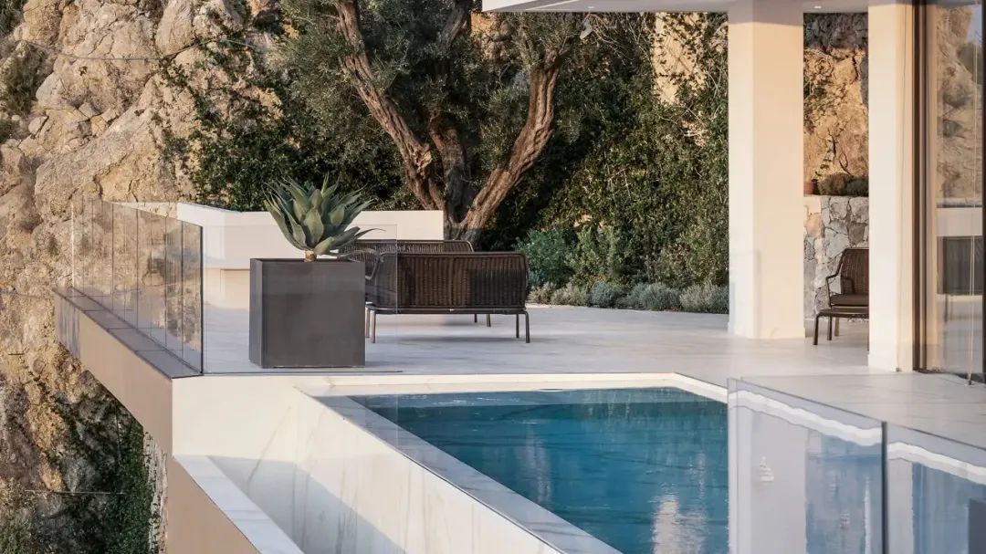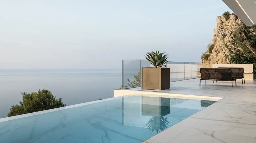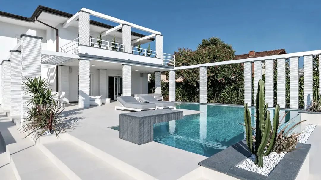 Laminam表面無縫連續(xù)地用于室內(nèi)和室外地板,應(yīng)用在私人別墅游泳池和室內(nèi)墻面地面。就像一條珍貴的絲帶,材料從內(nèi)到外自由流動,強調(diào)了各種室內(nèi)和室外空間之間的聯(lián)系。